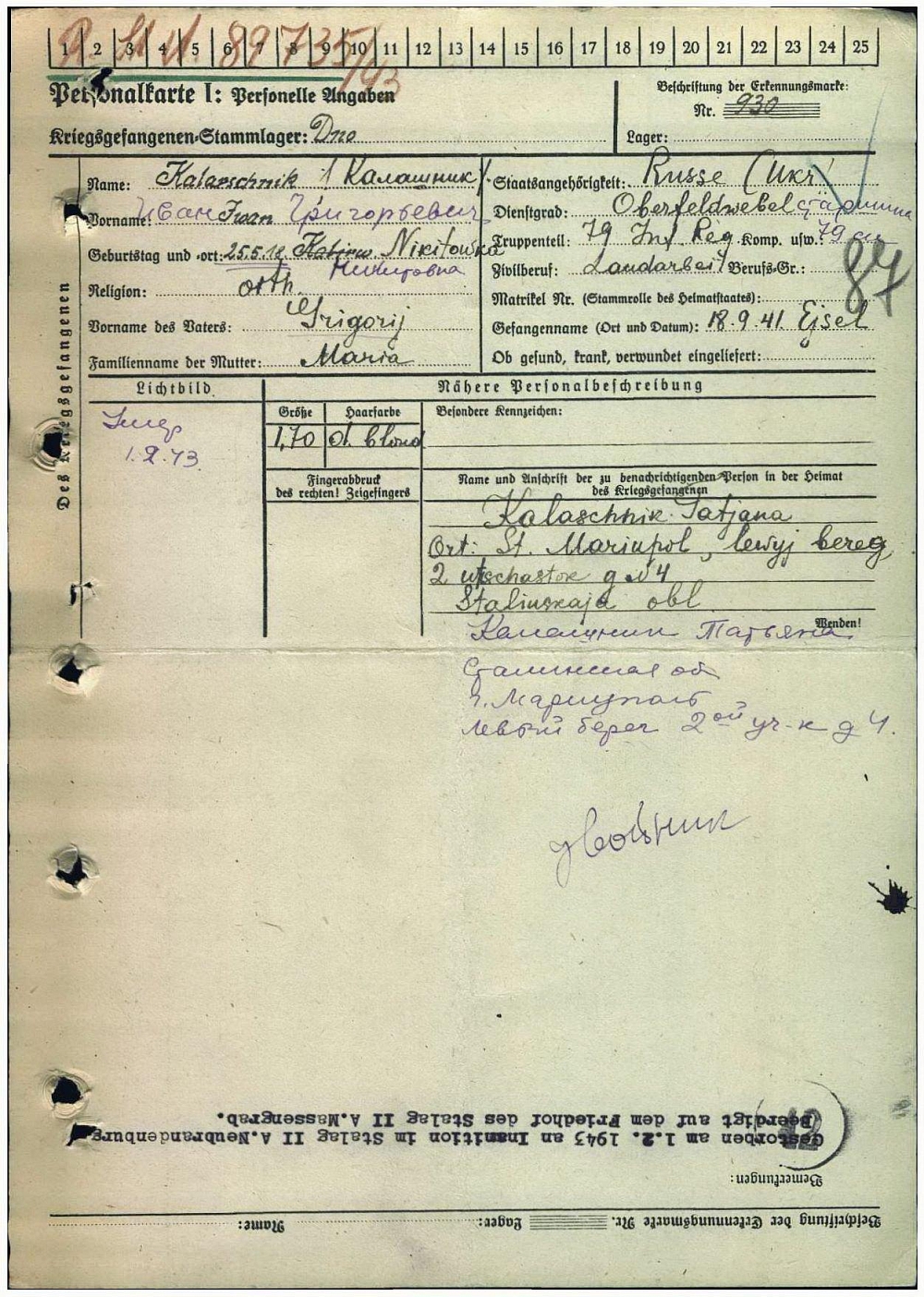 Сталинская обл., г. Мариуполь, Левый берег, 2-й участок, д. 4