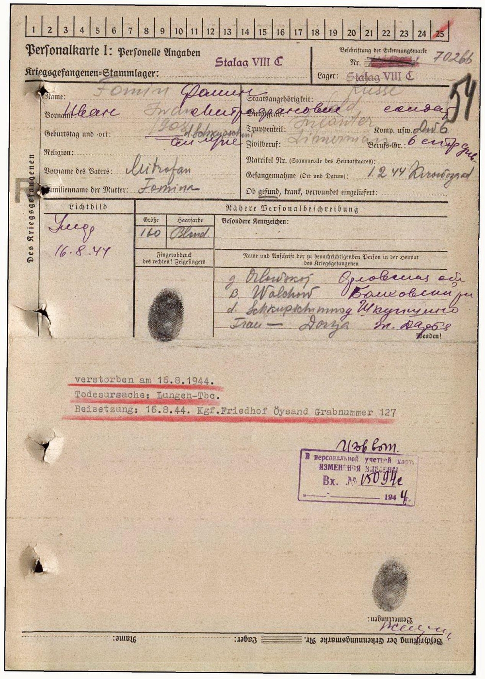 Kgf.Friendhof Oysand могила 127