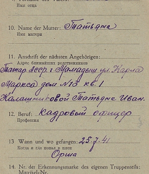 Последнее место жительства родственников: