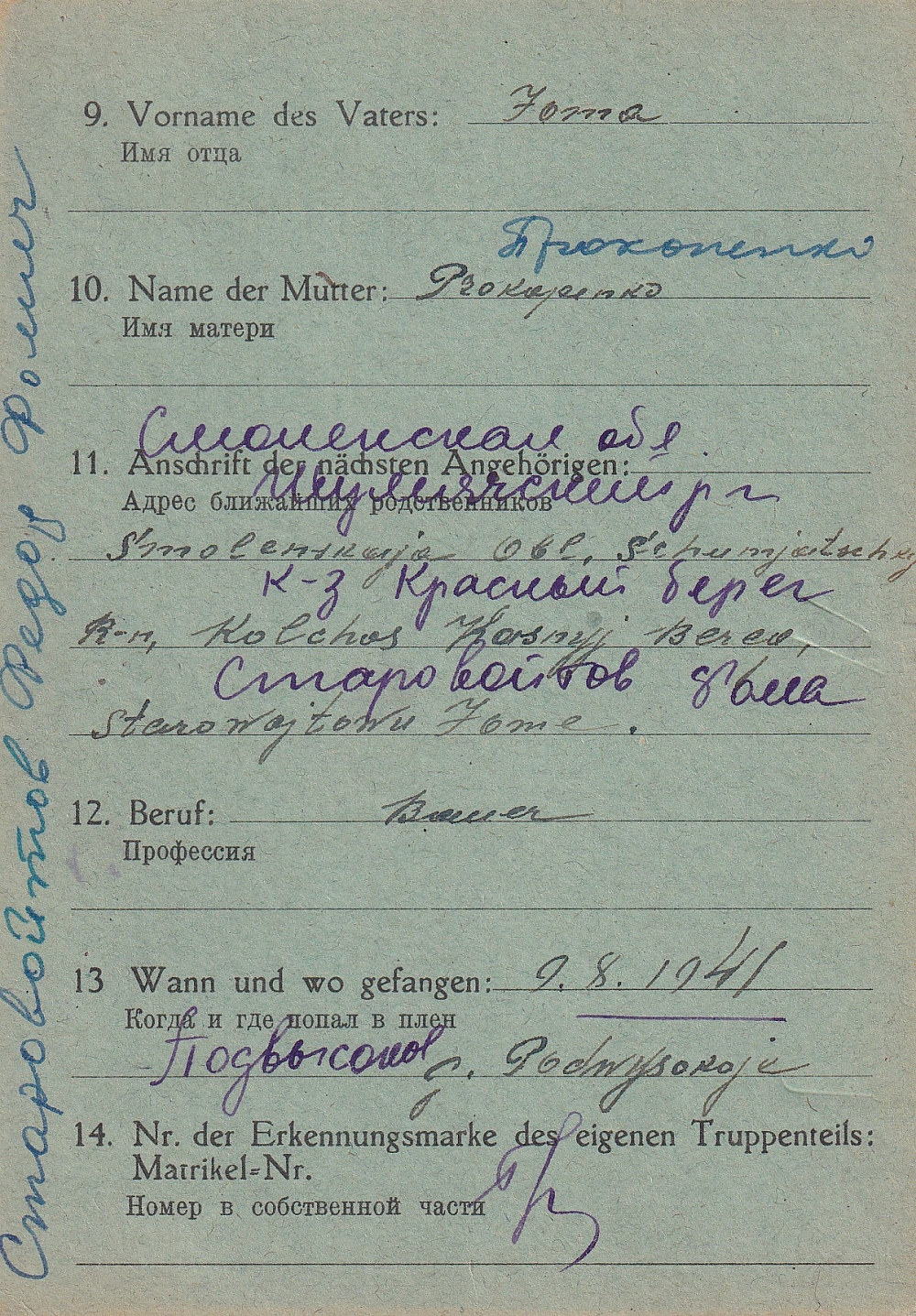 Последнее место жительства родственников: