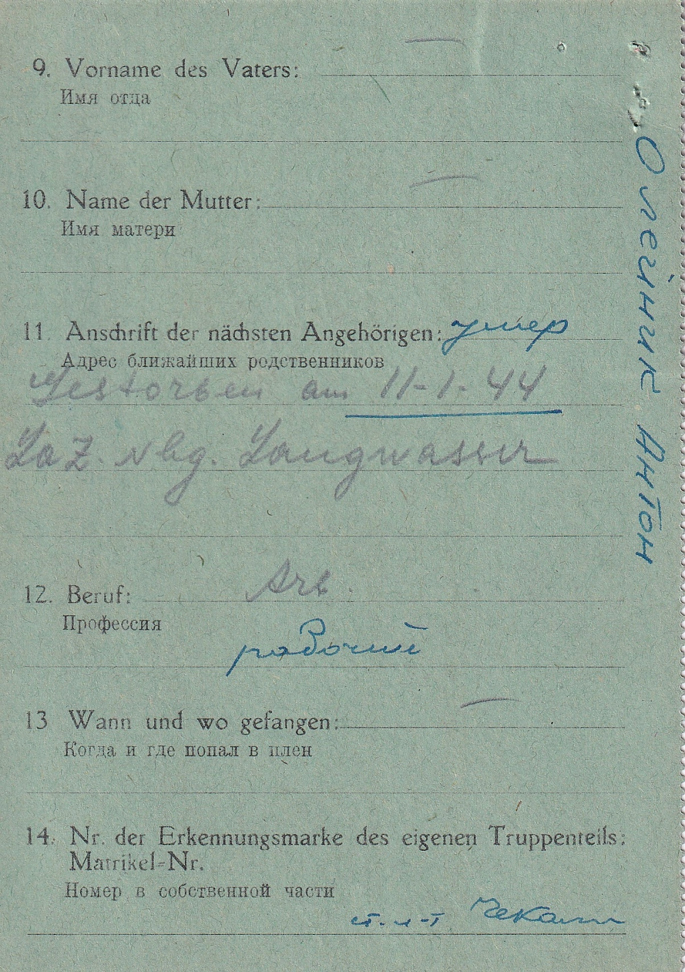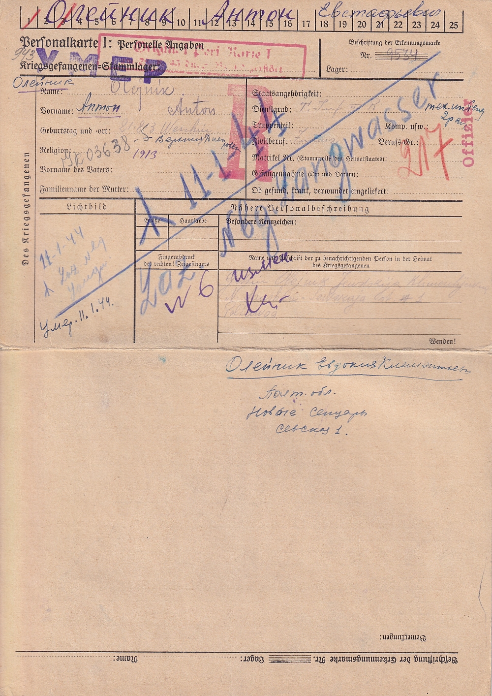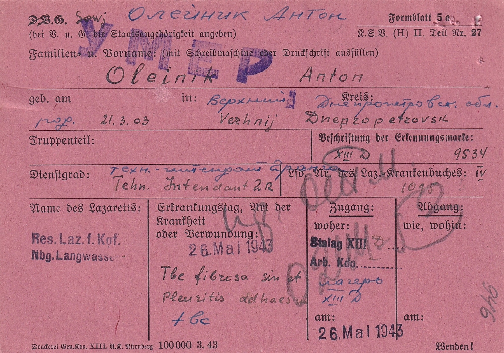 1919 - 16.07.1943 в лагерном лазарете, Стразбург. Эльзас от туберкулеза легких