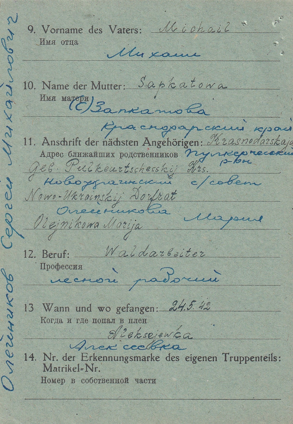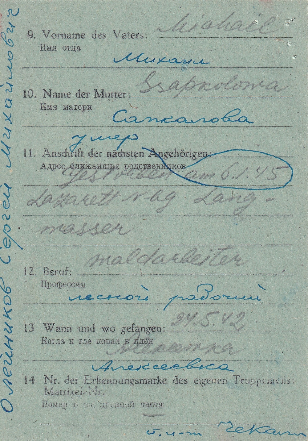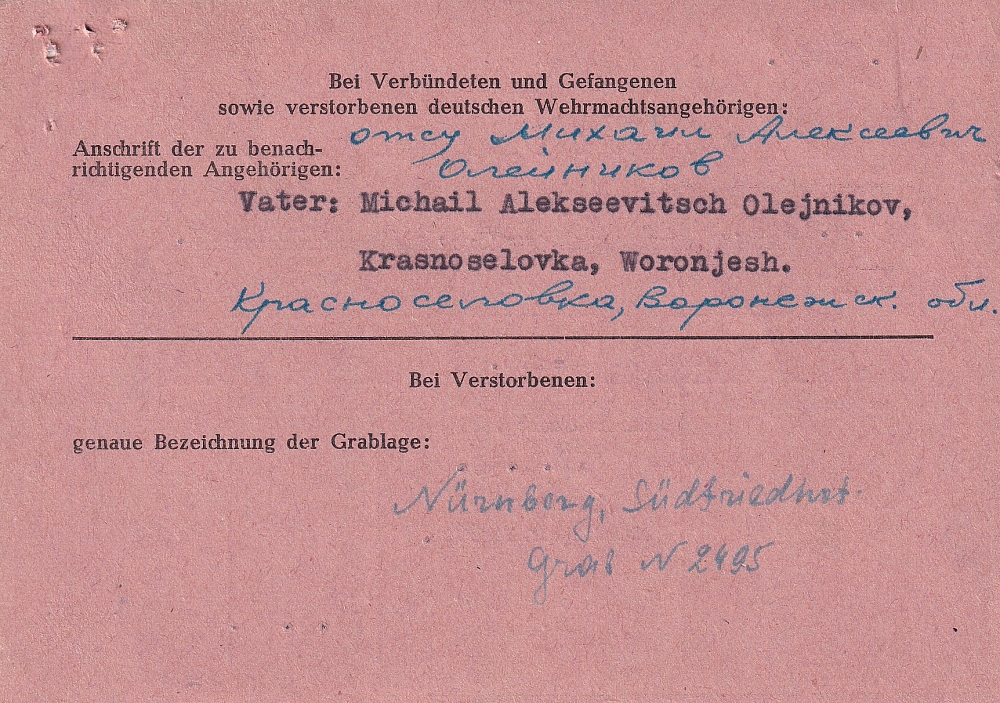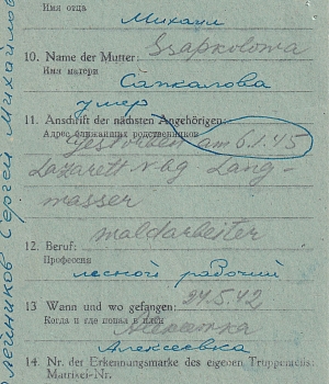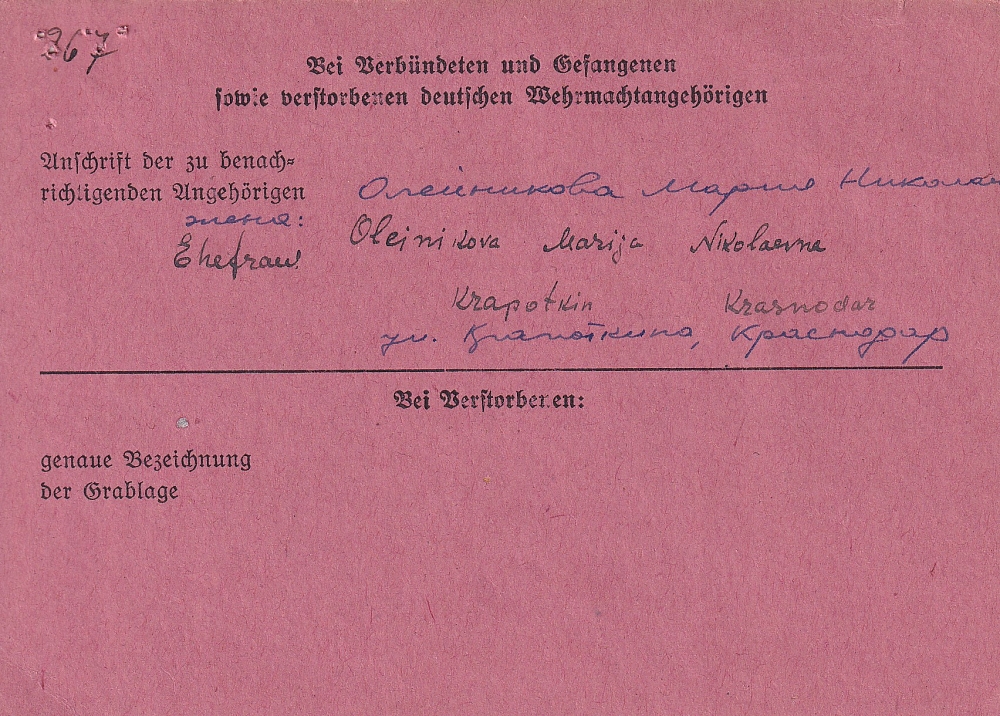 Последнее место жительства родственников:
