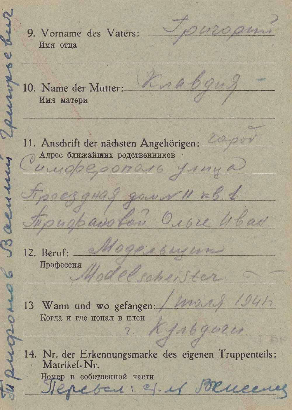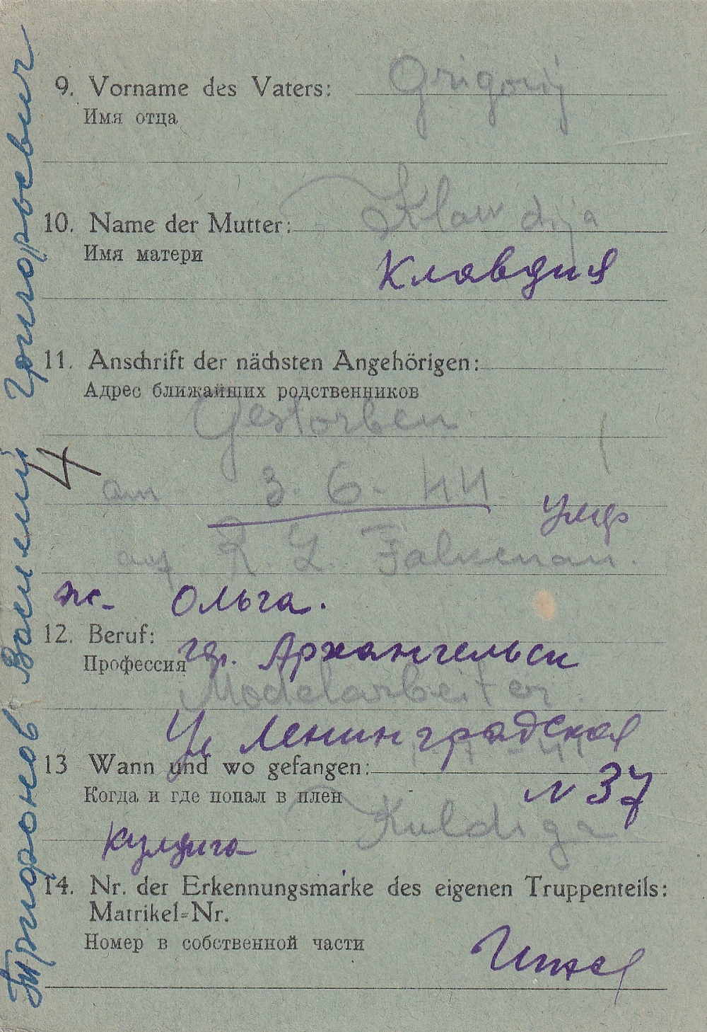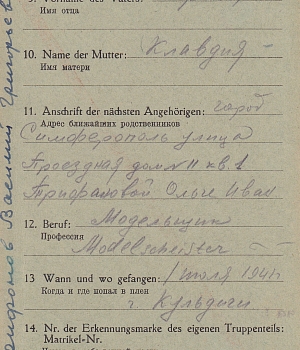 Последнее место жительства родственников: