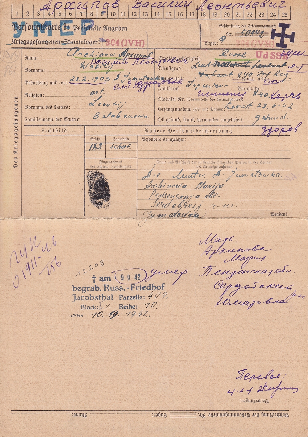 Якобсталь, кладбище для военнопленных, блок 1, участок 409, ряд 10