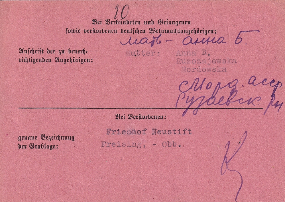 Последнее место жительства родственников: