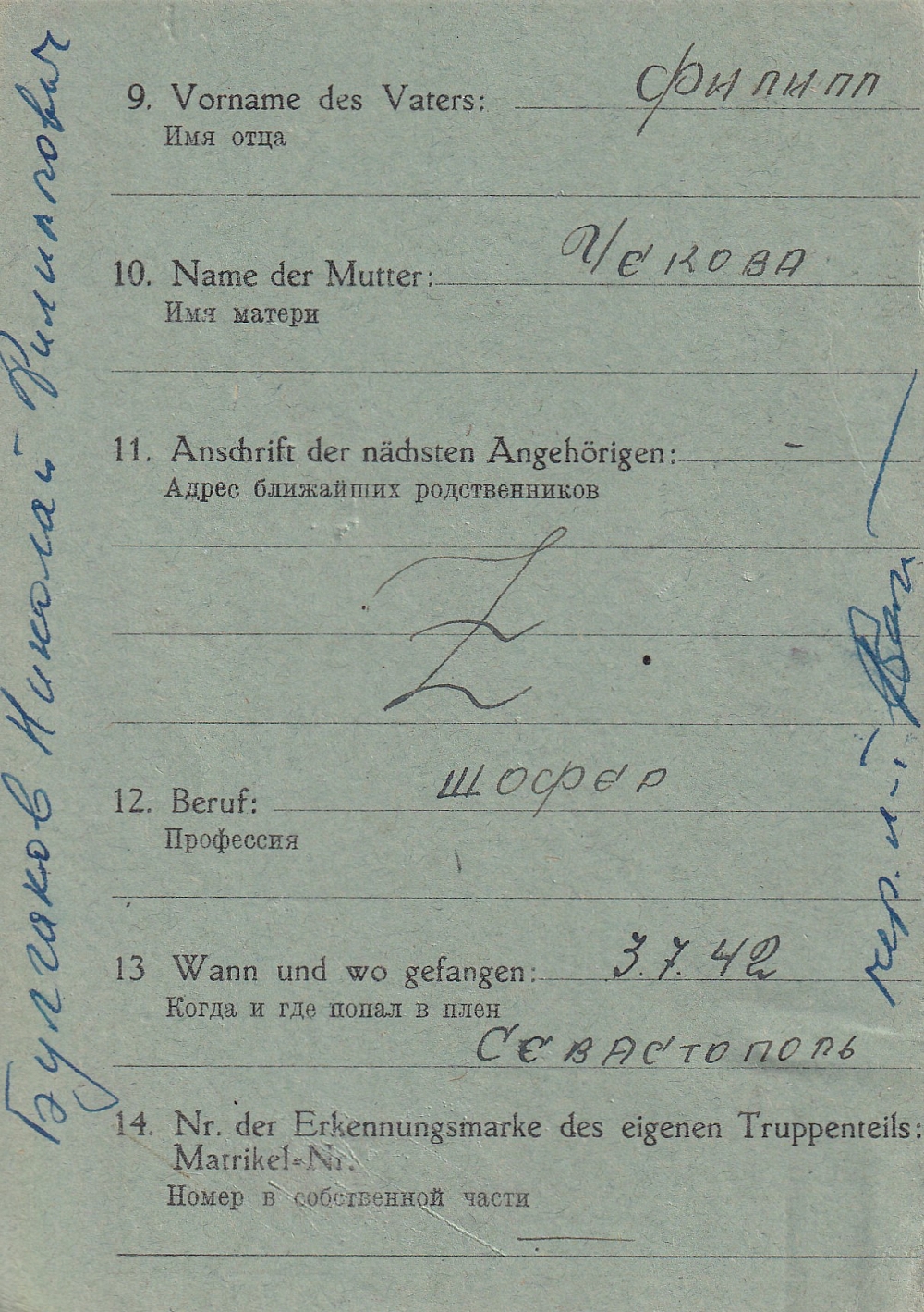 Последнее место жительства родственников: