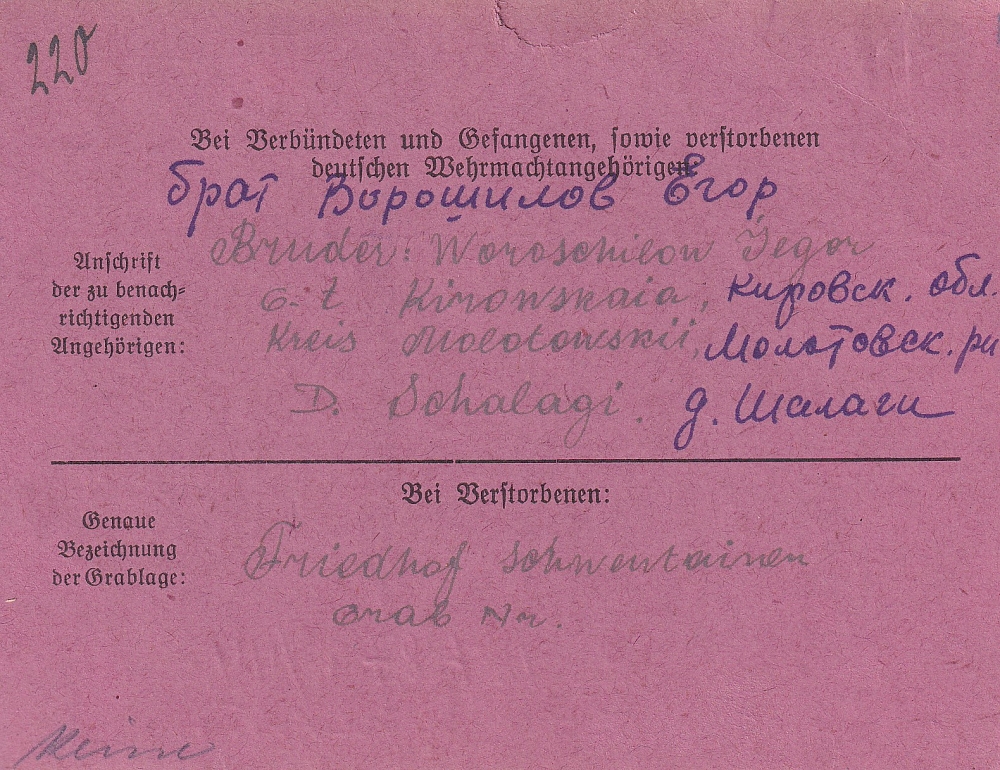 Последнее место жительства родственников:
