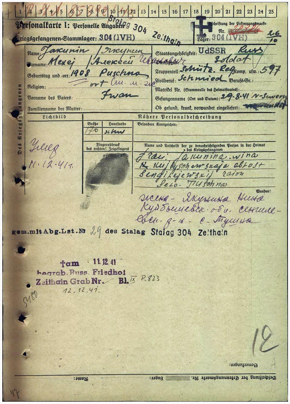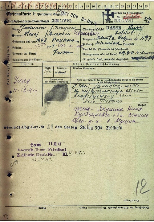Цайтхайн (Германия), кладбище для военнопленных, блок 10