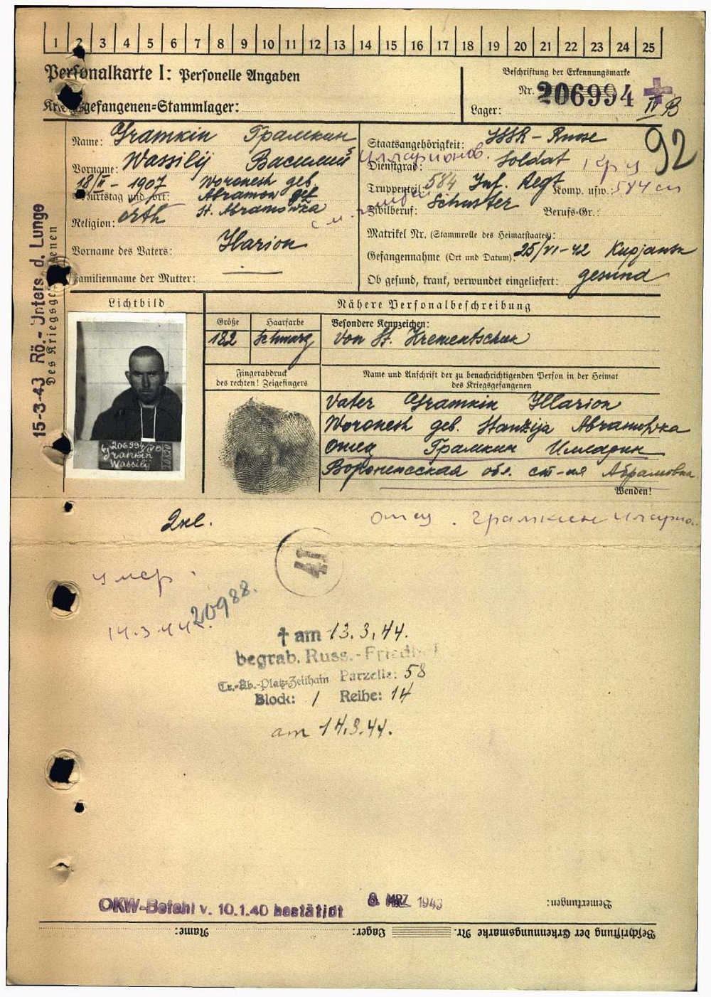 Цайтхайн (Полигон): уча-к 58, блок I, ряд 14