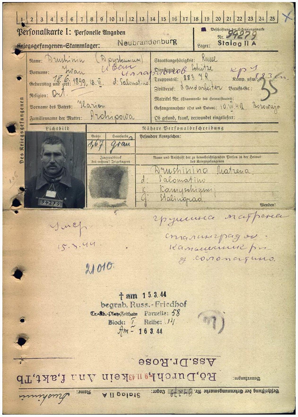 Цайтхайн (русс. кладбище), участок: 58, блок: I, ряд: 14