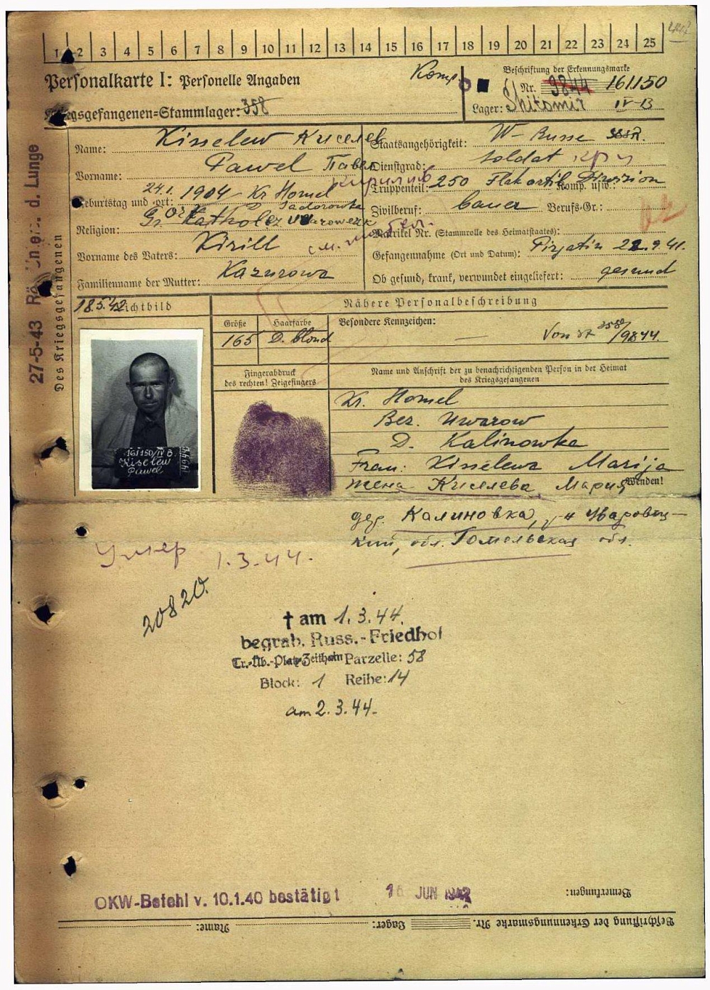 Цайтхайн, кладбище рус. военнопленных, участок 58, блок 1, ряд 14