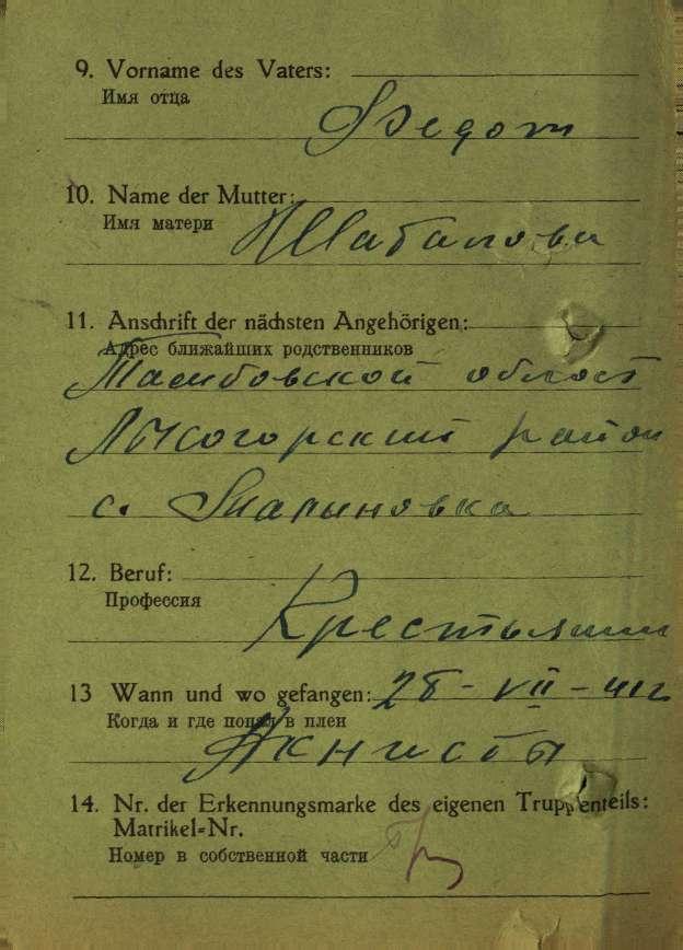 Последнее место жительства родственников: