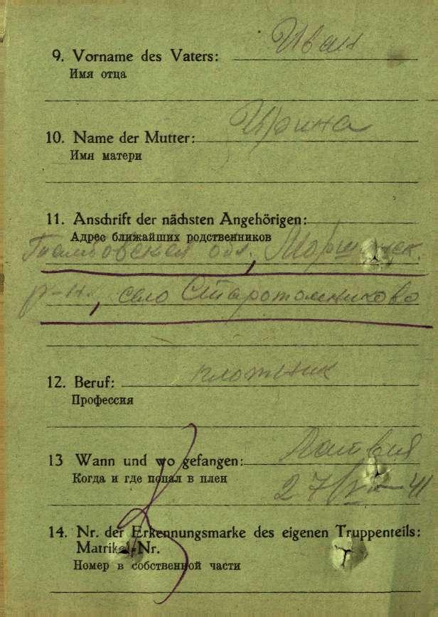 Последнее место жительства родственников: