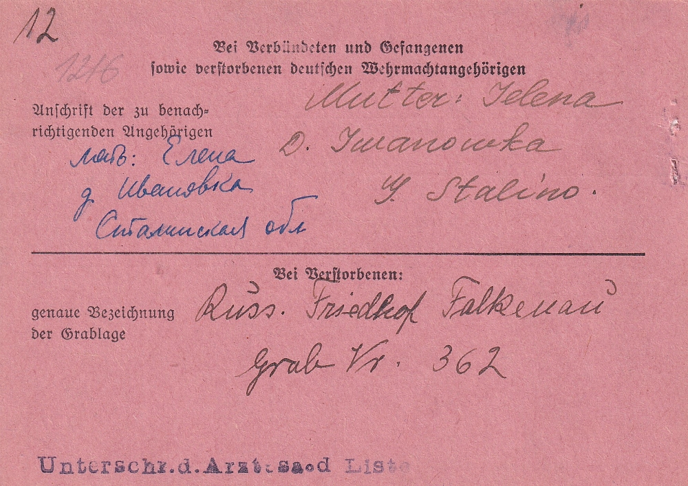 Русское кладбище в Фалькенау, могила номер 362