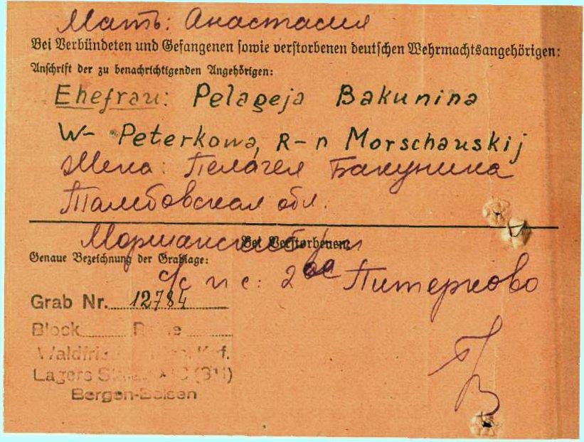 Последнее место жительства родственников: